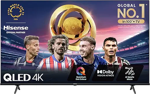 Hisense 55 Inch 4K QLED Smart TV 55E77NQTUK – Quantum Dot Colour, 4K AI Processor, Dolby Vision Atmos, Smooth Motion, Sports Mode, Vidaa OS with Freely, Youtube. £289: BUY NOW