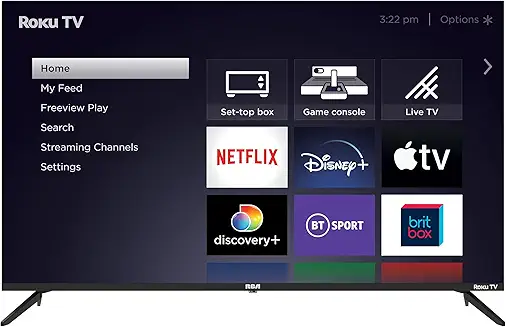 RCA Roku 50 Inch Smart TV, 50″ 4K Ultra HD TV with Apple TV+ BBC Netflix Freeview Play, HDR Dolby Audio DVB-T2/T 3 x HDMI 2 x USB 2.0 Port UHD Television. £243 Buy NOW